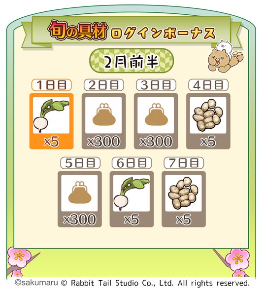 【旬の具材ログインボーナス(2月前半)】