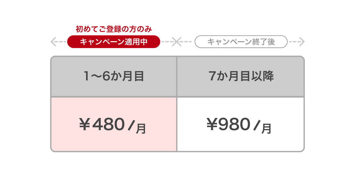 ※本キャンペーンは、初めてご利用の方が対象の初月無料トライアルは適用されません。