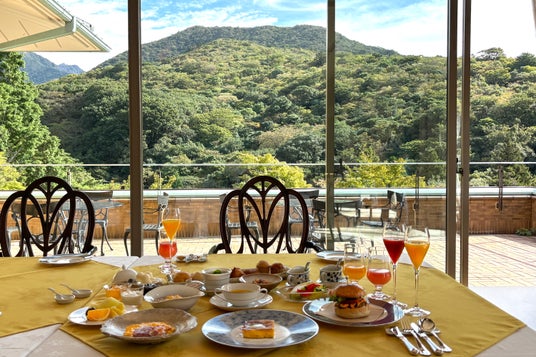 プライベートな空間でゆっくりと味わう「客室でのご会食」と、雲仙岳の素晴らしい景色を眺めながらお食事をお楽しみいただける「レストランでのご会食」のいずれかとなります。