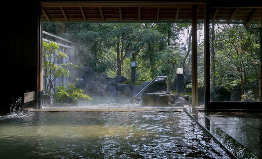 時間を忘れ、静寂に癒されるひとときを数寄屋造りの客室から眺める夜の庭園景色を独り占めできる特別室のプライベートな露天風呂特別室の内風呂