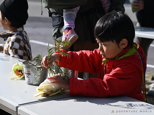 そのあとは、手のひらサイズの小さな恵方巻と白菜ひと玉サイズの恵方巻を手作り!