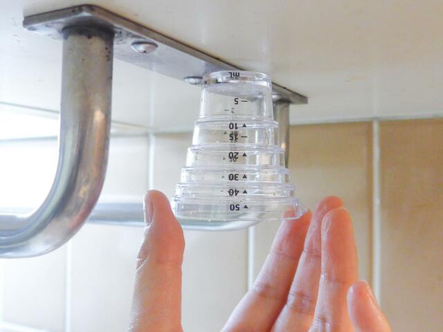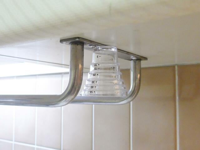 遠目から見ると、まさかそこに計量カップがあるとは思えない場所です。