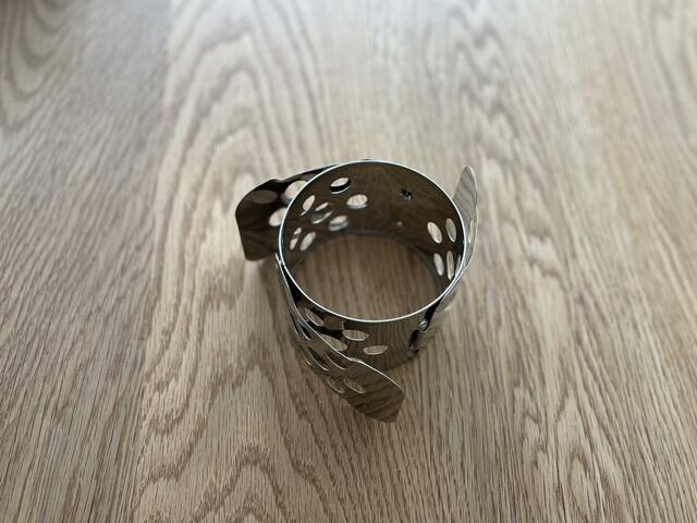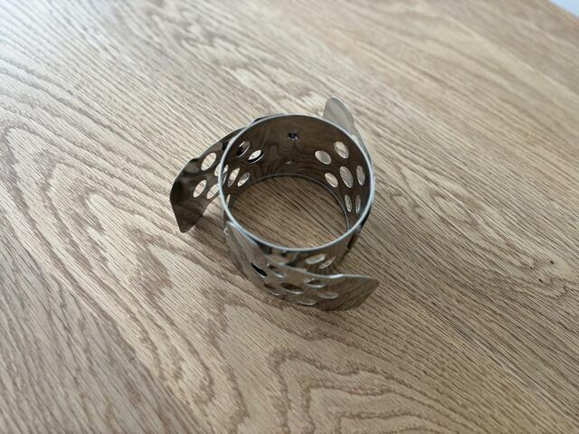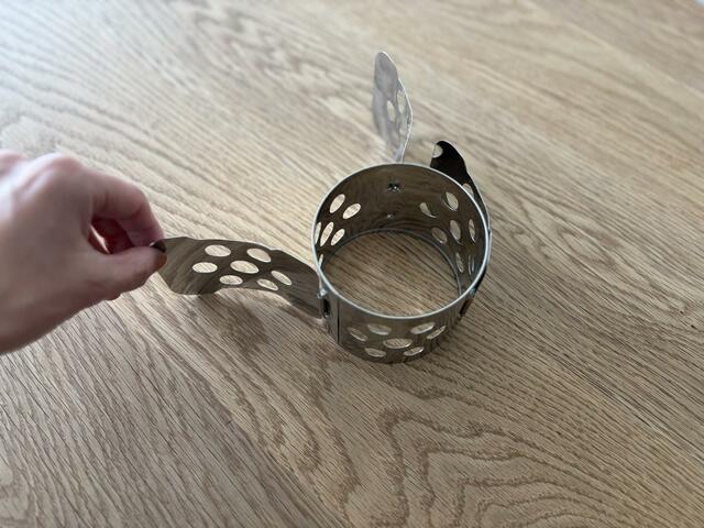 3つの羽のようなパーツを閉じたり開いたりすることでサイズを調整でき、20〜30cmの鍋に対応。