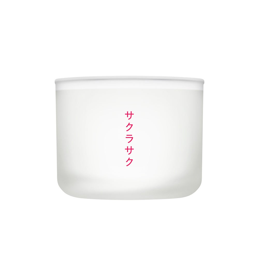 蓋を開けたときに見える内筒部分にテキスタイルのデザインをうつしました。外筒はソメイヨシノをイメージした柔らかなピンク色。上品な風合いの和紙と銀の箔押しで仕上げました。ボトルはサクラサク限定のピンクのフロストボトルにピンクの文字色を採用。パソコンを打つ指に、ペンを持つ手に、サクラが開花した時のような高揚感をプラスします。