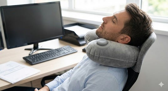 3. 【人間工学デザイン】「後頭部のコブ」が首をしっかり支える ただのU字型ではありません。首の後ろ部分に独自の「ダブルハンプ(コブ)形状」を採用。 この立体構造が頭の重さを分散させ、移動中の「首カックン(頭の前倒れ)」を防ぎます。 肌に触れる素材は、高級感のあるグレーの**「クリスタルベルベット(植毛加工)」**を使用し、さらさらと柔らかく、蒸れにくい快適な肌触りを実現しました。