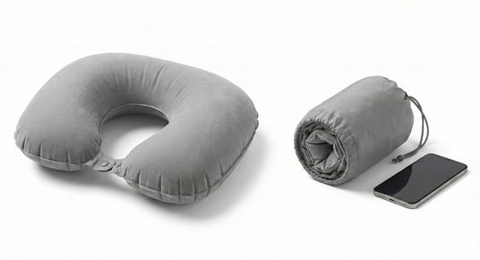 1. 【衛生的&スマート】指で押すだけ!口をつけずに30秒で完成 本体に内蔵された大きな「丸型ポンプ」を指でプッシュするだけで、みるみる空気が入ります。 口を一切つける必要がないため、非常に衛生的。空港のロビーや機内でも、人目を気にせずスマートに準備が整います。