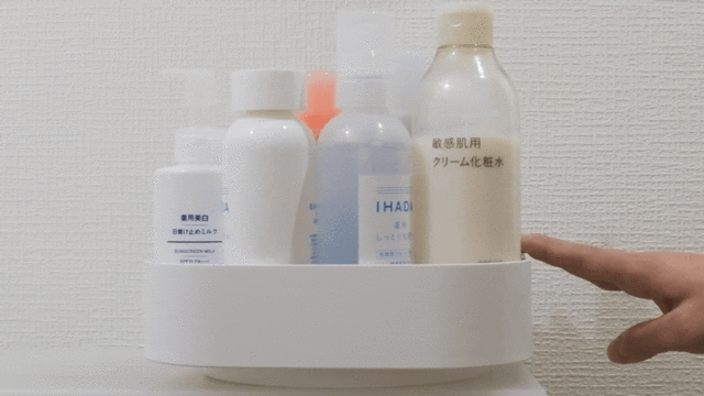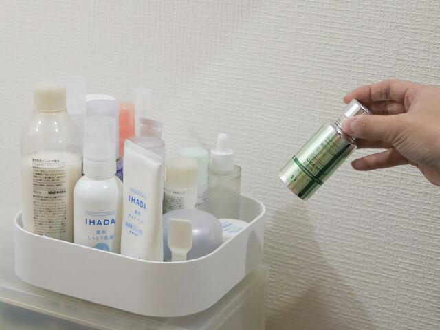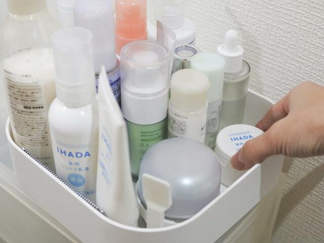 山崎実業のこれで整理したら、ごちゃつくスキンケアアイテムたちを、スムーズに取り出せるようになりました。
