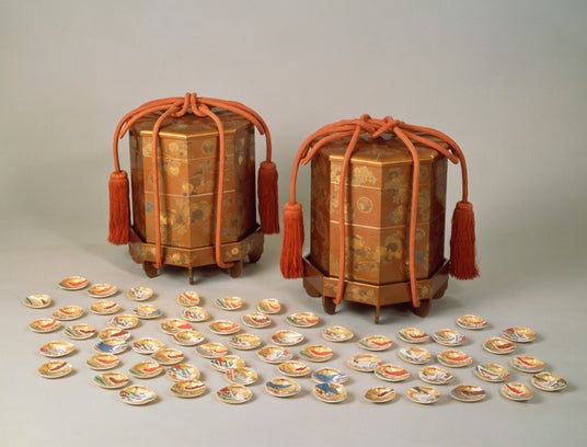 菊折枝蒔絵雛道具 貝桶/合貝 俊恭院福君(尾張家11代斉温継室)所用 江戸時代 19世紀 徳川美術館蔵