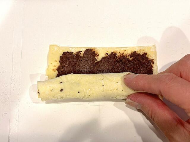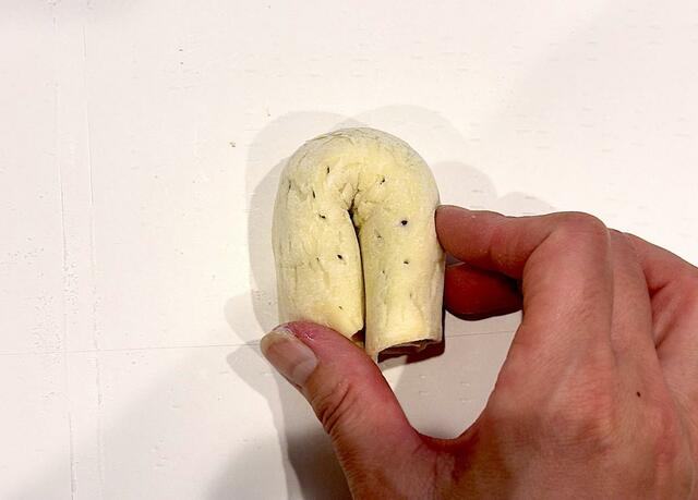 4. 端からくるっと巻いたら、半分に曲げる。
