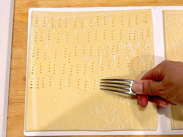 1. パイ生地は室温に10分ほど戻して少しやわらかくする。