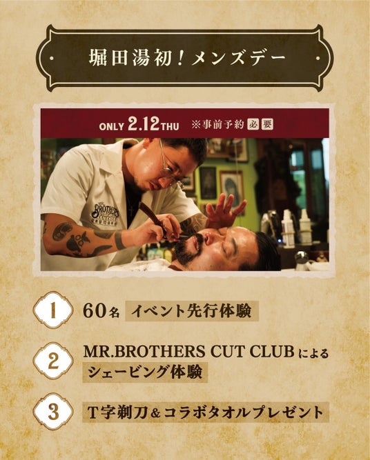 今回のコラボイベントの幕開けは、堀田湯として初の試みとなる「メンズデー企画」。