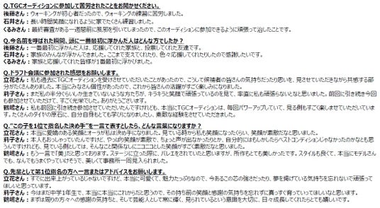 <質疑応答>アソビシステム株式会社1位指名:後藤まな、立花琴未(CANDY TUNE)、株式会社N.D.Promotion1位指名:石井仁菜、莉子、株式会社オスカープロモーション1位指名:くるみ、鶴嶋乃愛