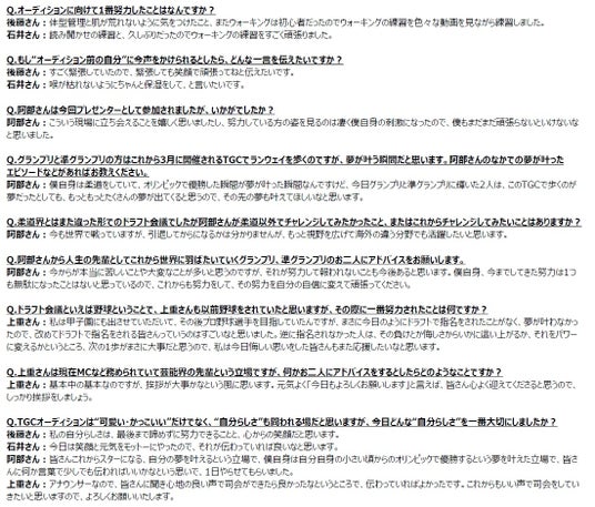 <質疑応答>阿部一二三、グランプリ後藤まな 、準グランプリ 石井仁菜、上重聡