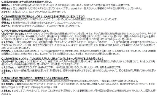 <質疑応答>株式会社スターレイプロダクション1位指名:瑞月桃、くれいじーまぐねっと、seju1位指名:伊藤希羽、なえなの、株式会社VAZ1位指名:あゆ、おさき