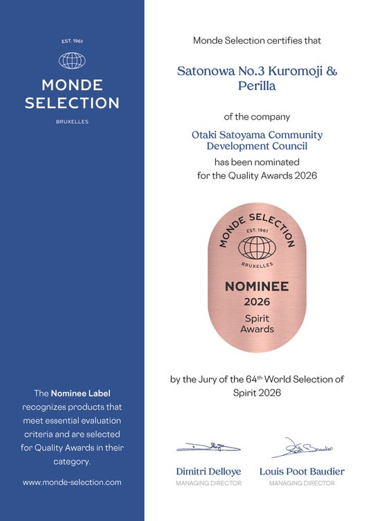 ■ SATONOWA(R) ビーツ、No.3 クロモジ&赤シソ 2作品がモンドセレクション World Selection of Spirits 2026 Quality Awards 2026 にノミネート