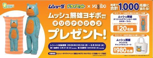 エステー株式会社(以下、エステー)は、「ムシューダ・ドライペット ムッシュ熊雄オリジナルグッズプレゼント!キャンペーン」を2026年2月2日(月)から2026年6月30日(火)(※1)まで実施します。