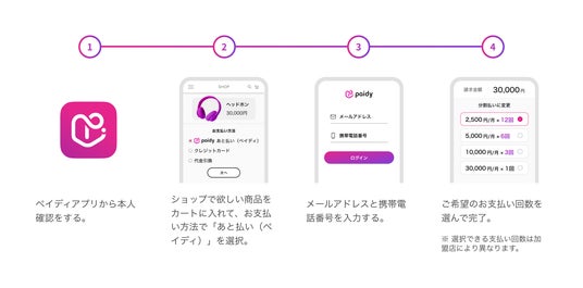 *2 ご利用いただける分割回数は加盟店によって異なります。詳しくはペイディのホームページをご確認ください。