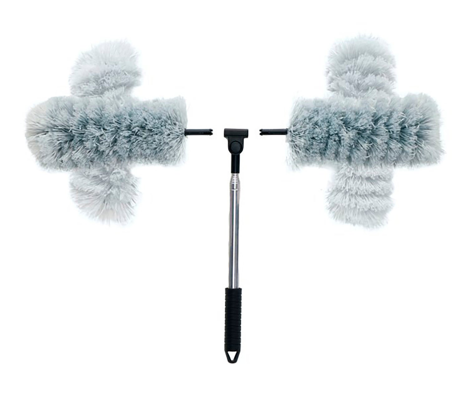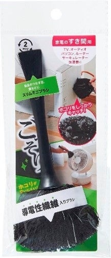 ブラシには、導電性繊維を使用。舞い上がりがちなホコリもしっかり絡め取って逃しません。「なでるだけ」で、ごっそり♪ブラシを、サイドに2個はめ込むと、長いブラシに。壁や天井など幅広い場所にも便利です。