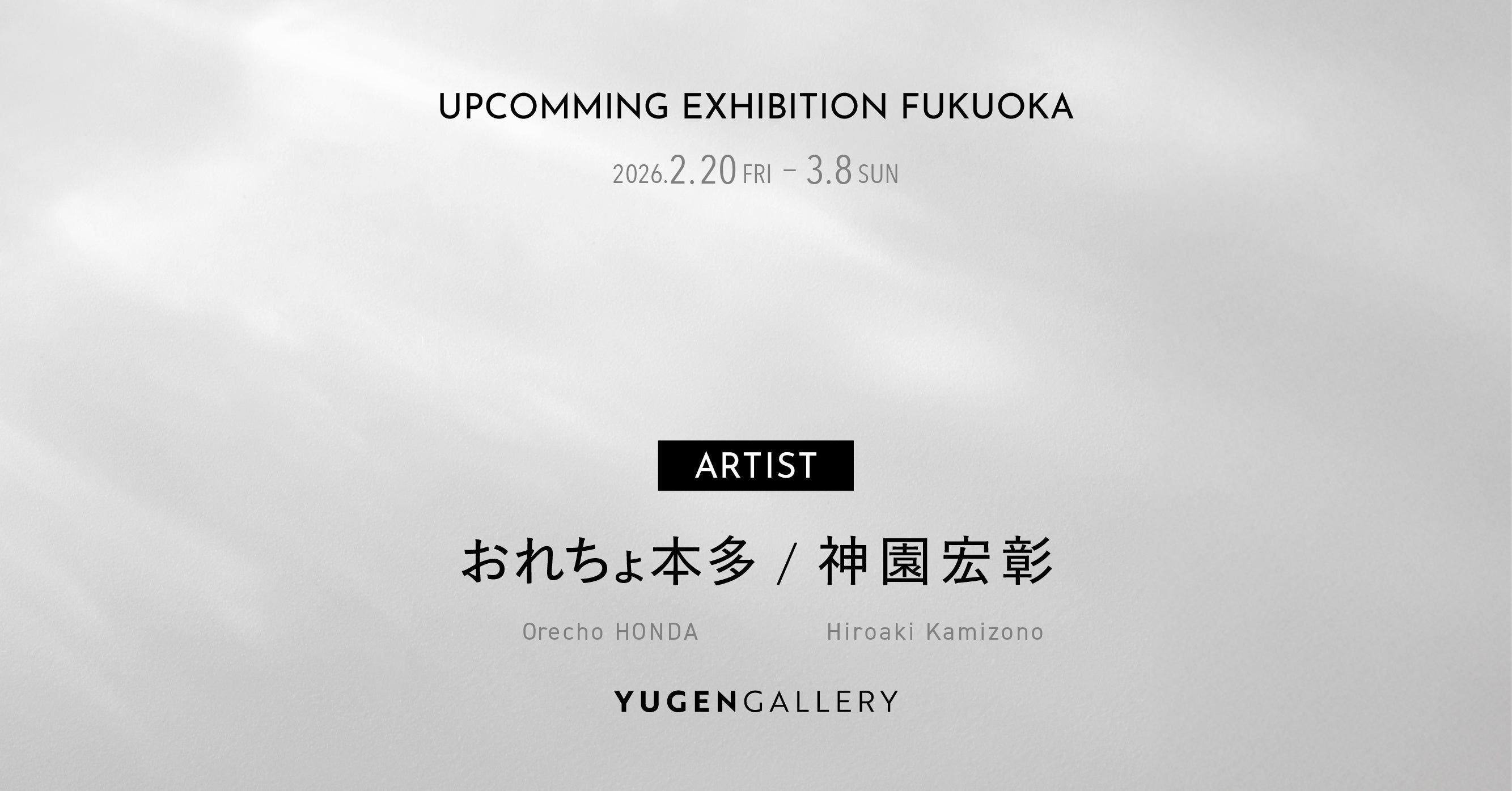 YUGEN Gallery FUKUOKA(福岡県福岡市中央区大名2-1-4 ステージ1西通り4F)では、2026年2月20日(金)より、おれちょ本多と神園宏彰による二人展を開催いたします。