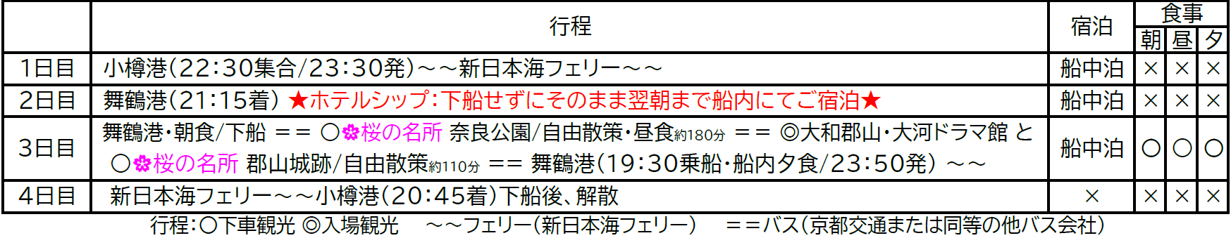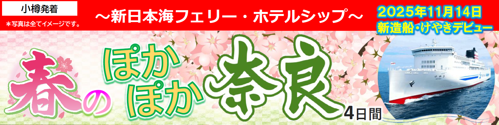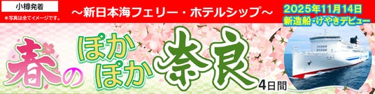 ~新日本海フェリー・ホテルシップ~春のぽかぽか奈良4日間出発日 2026年3月28日(土)・4月4日(土)