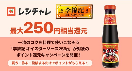 国内No.1のレシート買取りアプリ「レシチャレ」(※1)は、2026年2月2日(月)~3月29日(日)の期間、エスビー食品株式会社の「李錦記 オイスターソース255g」を購入したレシートをアップロードすると50円相当のポイントを付与するキャンペーンを実施します。