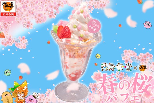 Miコーポレーション株式会社(本社:福岡市博多区、代表取締役社長:松石崇志)が運営する“お好み焼専門店どんどん亭”は、株式会社ナオブランド(本社:福岡県北九州市、代表取締役社長:中川直寿)の運営する"和洋菓子本舗 恋寿華堂"とのコラボレーション商品『恋寿華堂 春の桜パフェ』を、2026年2月17日(火)よりどんどん亭全店で数量限定で販売いたします。