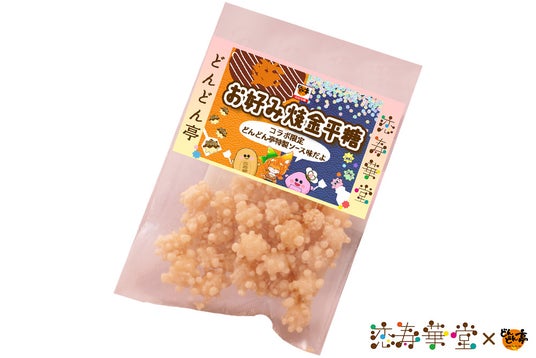 コラボデザートを注文すると、どんどん亭特製お好み焼ソースと恋寿華堂の金平糖がコラボレーションした、甘さと塩気の絶妙なハーモニーがやみつきになる『お好み焼金平糖』がもらえる!!