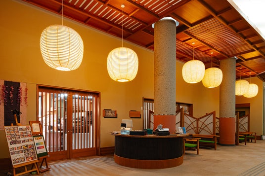 名立の湯「ゆらら」、屋内プール(夏季限定)、ホテル「光鱗」(客室25室)、宴会場