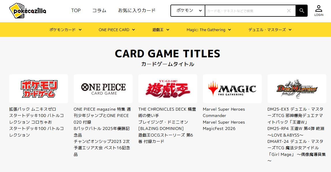 いくらカードの登録点数が多くても、目当てのカードにたどり着けなければ意味がありません。新しいポケカジラでは、トレカタイトルごとにプレイヤーのニーズに合わせて細分化された検索機能を搭載し、目当てのカードを簡単に検索できるようになりました。