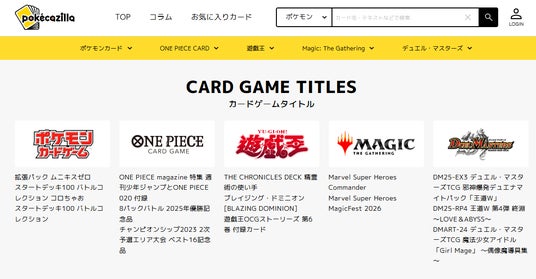 トレカの価格比較サービス「ポケカジラ」を展開する株式会社カブキ(本社:神奈川県藤沢市、代表取締役:片川創太)は、2026年1月27日、取り扱いトレカタイトルを5つに拡大いたしました。これまでの「ポケモンカードゲーム」に加え、新たに「マジック:ザ・ギャザリング」「ONE PIECEカードゲーム」「遊戯王OCG デュエルモンスターズ」「デュエル・マスターズ」に対応。