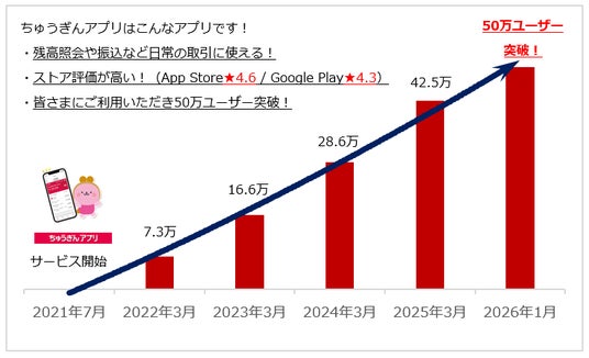 中国銀行(岡山市 頭取 加藤 貞則)は、「ちゅうぎんアプリ」のユーザー数が50万人を突破したことを記念し、2026年2月2日(月)~2026年6月30日(火)の期間限定で、「50万ユーザー突破じゃ!ちゅうぎんアプリ大感謝祭」を開催いたします。
