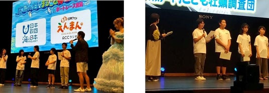 広島の海を五感で楽しみ学ぶイベント「広島の海まるごと体験フェスタinボートレース宮島」(瀬戸内プロジェクトin広島と宮島ボートレース企業団の共催)を開催しました。「瀬戸内こども牡蠣調査団」の中学生団員11名は会場内のイベントホールで、RCCラジオの人気番組「まるっと日常ワイド えんまん。」の公開収録イベントに特別出演、江田島で牡蠣を通して何を学んだかを説明した後、学びの成果を同世代やより年下の年代へ伝えるための「教材」を作っていることを説明、およそ550名の観客が見守る中、学んだことを基に「牡蠣の知られざる秘密」についてクイズを出題しました。「牡蠣はオスになったりメスになったりする〇か×か?」とか「牡蠣は地球温暖化を防ぐことに貢献している〇か×か?」など、地元の名産の意外に知られていないことを番組パーソナリティやゲストを交えて、会場が一体となって楽しく学びました。
