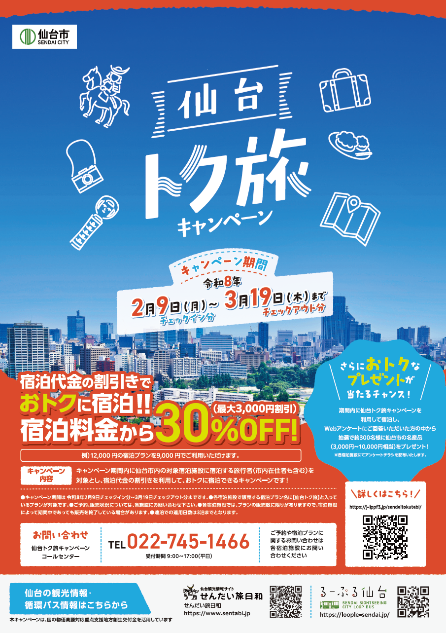※プラン名に【仙台トク旅】というキーワードが入っているものが対象プランです