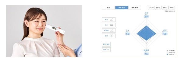 気になる肌悩みや現在のスキンケア状況などの簡単な質問をタッチパネルにご入力いただいた後、わずか10秒で毛穴・シミ・角栓・キメまでわかる最新の肌チェック機器です。