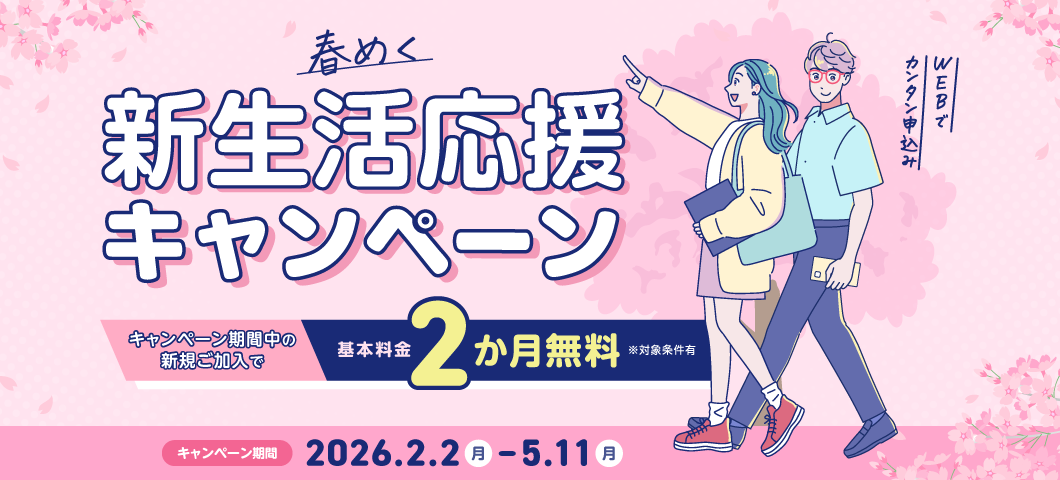 キャンペーン期間中に対象プランへ新規ご加入いただいた方は、基本料金2か月無料