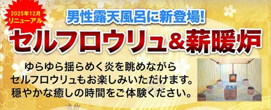 男性露天風呂に新登場!セルフロウリュ&薪暖炉