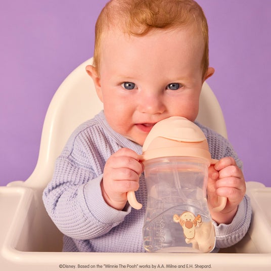 軽量で、赤ちゃんの手にフィットしやすいサイドハンドル付きの本体は、哺乳瓶からのステップアップや、離乳食と同時期のストローデビューにも最適。