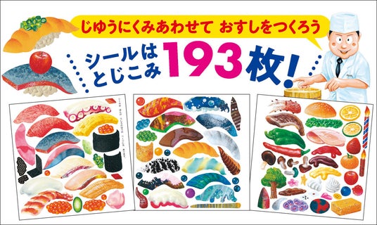 193枚のシールで想像力を駆使し「組み合わせ無限大」のオリジナルおすし絵本を完成させよう!