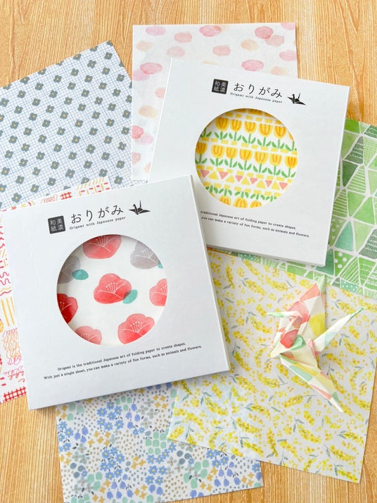 伝統を、今のかわいさで楽しむ。古川紙工の箱入りおりがみは、現代の暮らしになじむ配色と、軽やかな柄表現にこだわったデザインが特長です。
