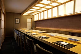 東京銀座「鮨 さえ喜」がホテルでは初のプロデュース。佐伯裕史氏が監修する月替わりのコースは、伝統と独創性を兼ね備えた美しい技が光ります。心地よい空間で、名店の味わいをご堪能ください。