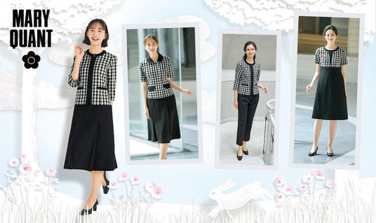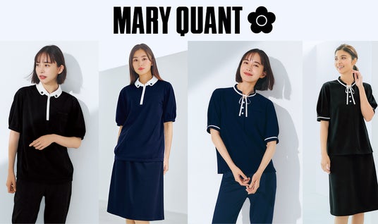 美に携わるミューズたちの装いも得意なマリークワント。シンプルな色とシルエットをプレイフルに操って、タイムレスに愛されるエレガントなユニフォームに。