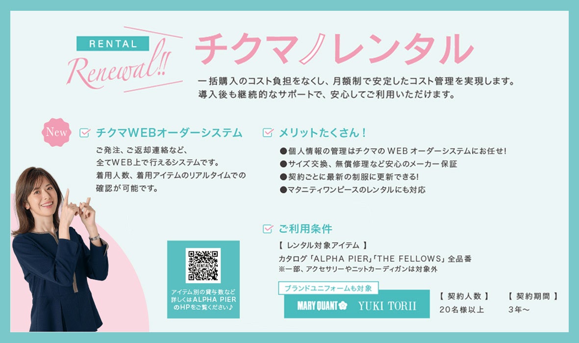 株式会社チクマ(本社:大阪市中央区、代表取締役社長:堀松 渉)が、女性用ユニフォームカタログ 『アルファピア』の春夏新商品を発表します。