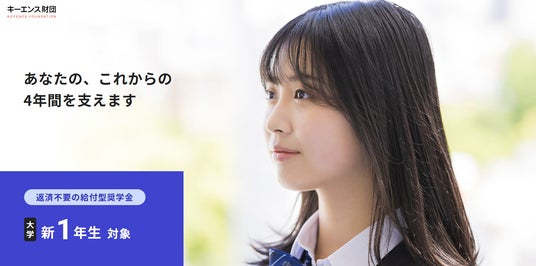 2026年4月に大学へ入学される新1年生の皆さんへ。 キーエンス財団の「給付型奨学金」、今年度の募集がスタートします。
