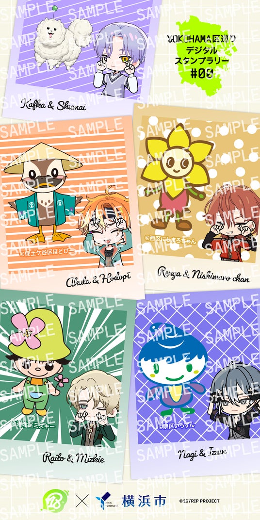 「18is」が観光区長を務める4つの区(西区:西園練牙、保土ケ谷区:五十竹あく太、港北区:北片來人、泉区:蜂乃屋 凪)及びみなとみらい駅(大黒可不可)にて、「YOKOHAMA 区巡りデジタルスタンプラリー#00」を実施します!各スタンプスポットに各区の観光区長のスタンディが登場!各スタンプスポットでスタンディの二次元コードを読み取ると、スタンプ獲得ごとに「観光区長のおすすめスポット紹介レポート画像」を手に入れることができます。
