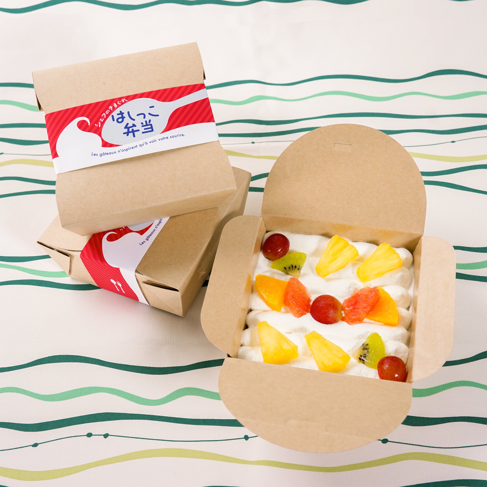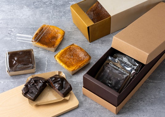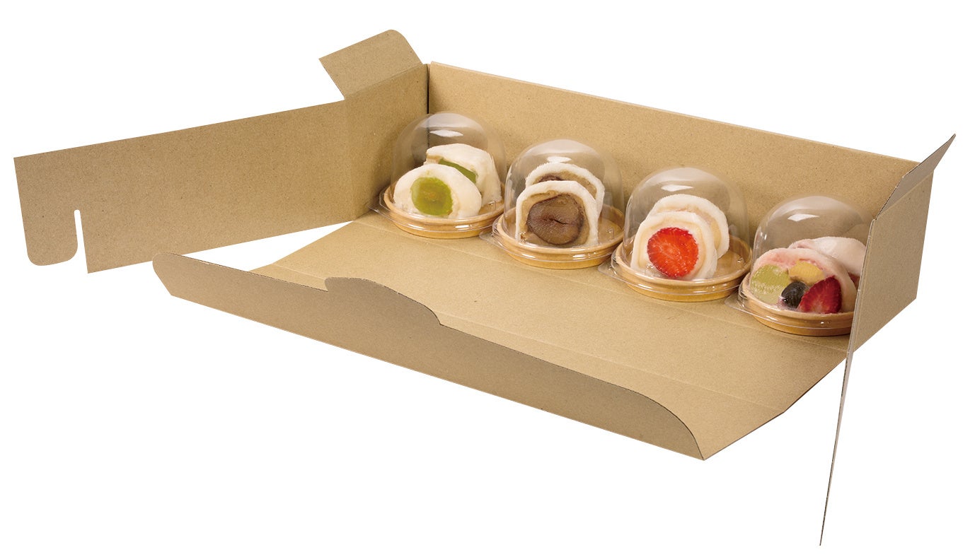 スイーツはそのまますくっても、紙箱を広げて切り分けてもお楽しみいただけます。