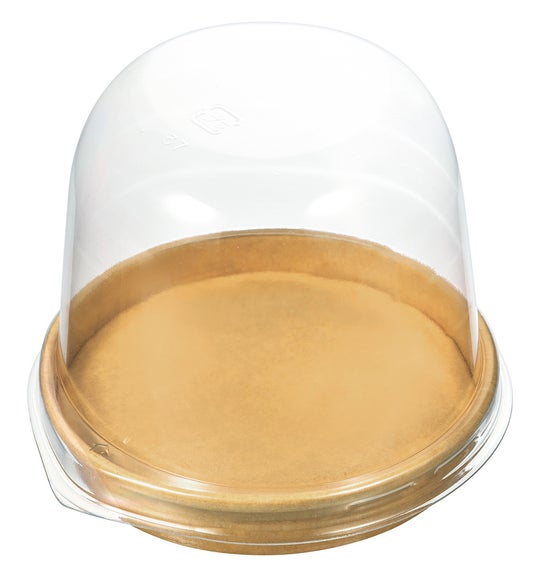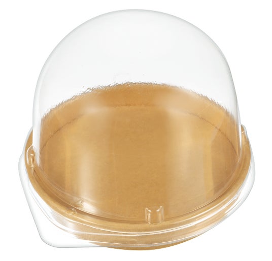 エコPAO72φ紙トレー(クラフト)とA-PET 72φ 紙トレー用蓋はF/F ロールケーキ箱 茶にピッタリ入る