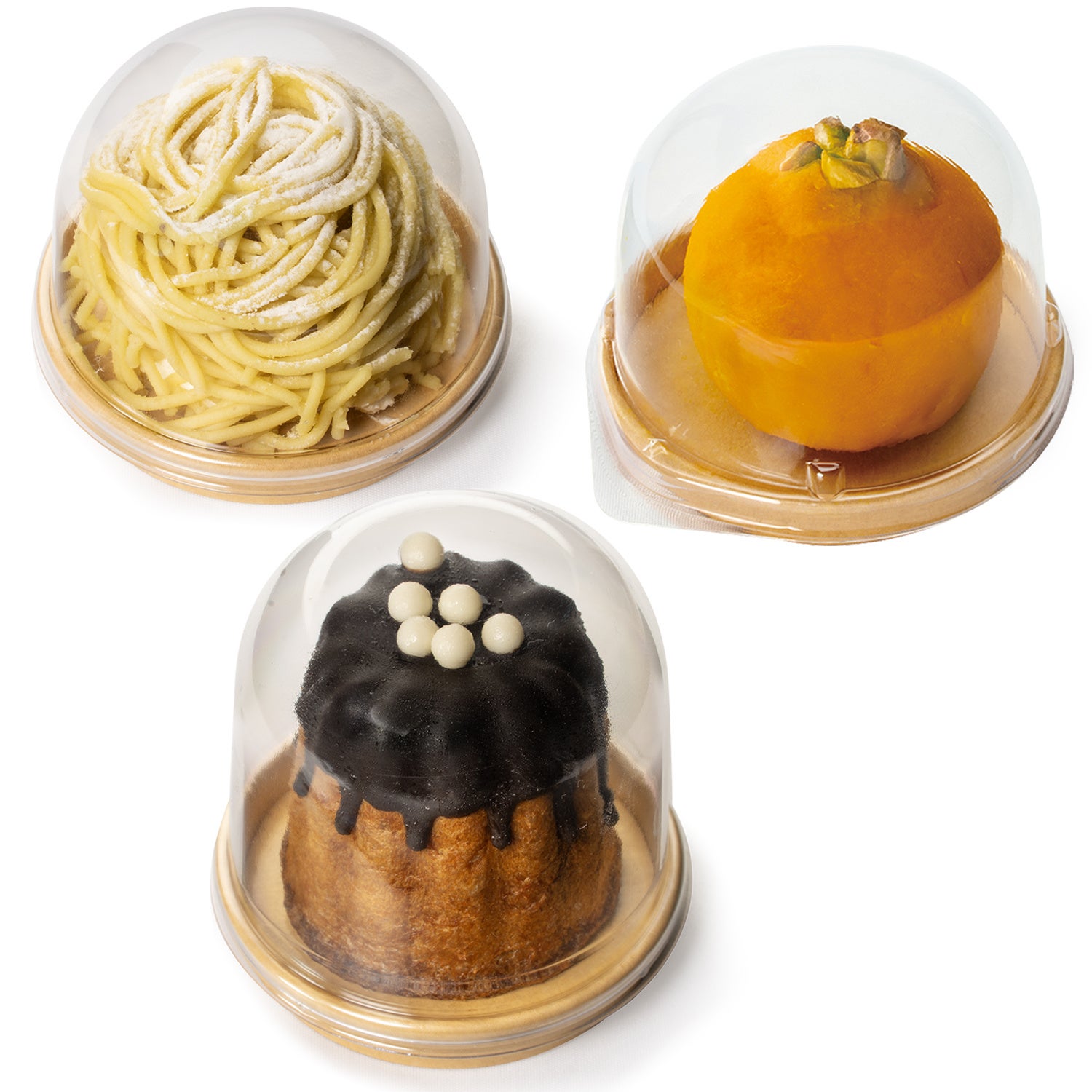 【エコPAO78φ紙トレー(クラフト)】【エコPAO72φ紙トレー(クラフト)】【エコPAO62φ紙トレー(クラフト)】紙製でありながらインジェクショントレーのようにしっかりとした縁があり、持ちやすさに配慮。高台付きの設計で、お菓子のボリューム感を引き立てます。柔らかな風合いとクラフト紙特有のモダンな印象を併せ持ち、環境にも配慮したSDGs対応トレーです。