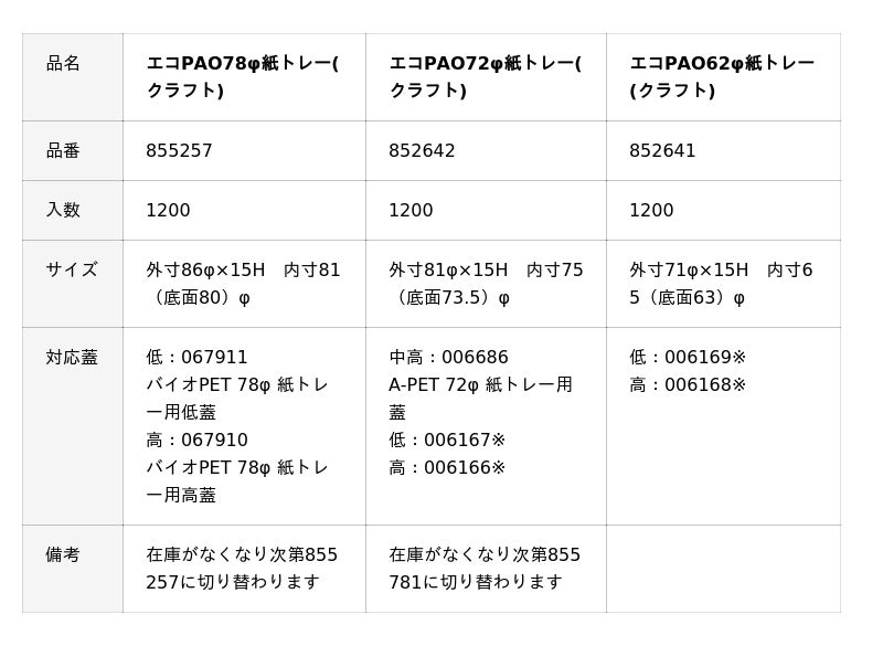 <エコPAO紙トレー(クラフト) シリーズ>