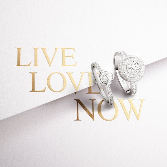 ピアジェのリングが紡ぐのは、純粋な愛の物語。洗練された女性らしさと美しさをたたえるエンゲージメントリングは、心からの愛を受け入れた2人を照らし、互いへの愛をより深くします。