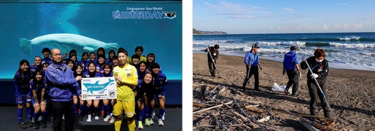 鴨川シーワールドのキャストと参加者、市内企業様(鴨川市、イオン鴨川、JR安房鴨川駅、オルカ鴨川FC)のスタッフが集まり鴨川シーワールド前の海岸を清掃します。
